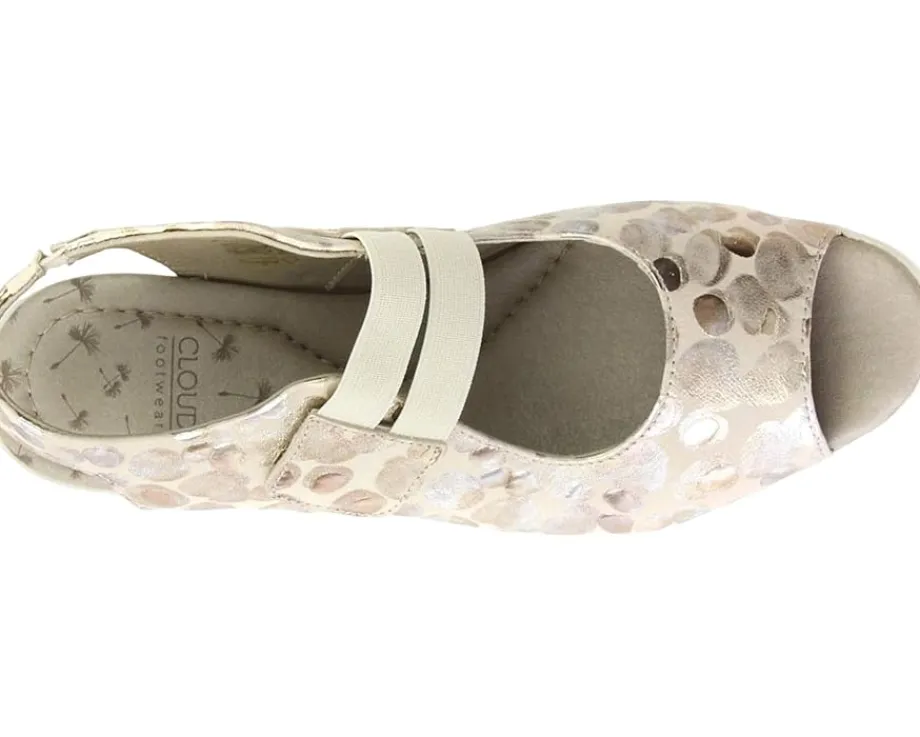 - Feel as though you could dance through the day wearing the CLOUD® Harper featuring an Italian leather upper, slip-on construction with elastic straps and hook-and-loop closure, peep toe silhouette, and flexible EVA outsole.