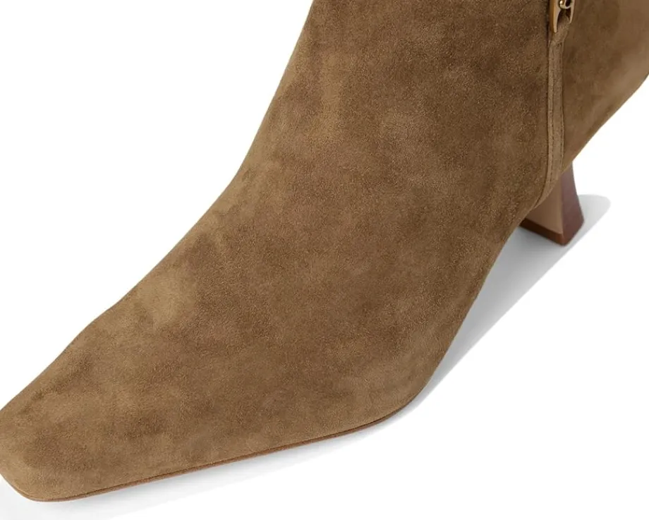- From morning to night, elevate your chic style in the COACH® Raquel Suede Boots. Featuring a side zipper closure in a square toe silhouette with a kitten heel, these boots are crafted from a smooth leather upper, leather and textile lining and a leather insole.