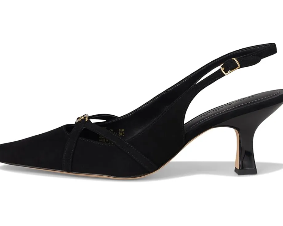 - A touch of timeless: The COACH® Rowyn Slingback – experience effortless sophistication. Crafted with a luxurious leather upper and outsole, complemented by a sleek faux leather lining and insole, these slingbacks redefine chic. The square toe design offers modern flair, while the kitten heel delivers all-day wearability. A secure ankle buckle closure ensures a tailored fit, making these the perfect companion for everything from office meetings to evening soirées.