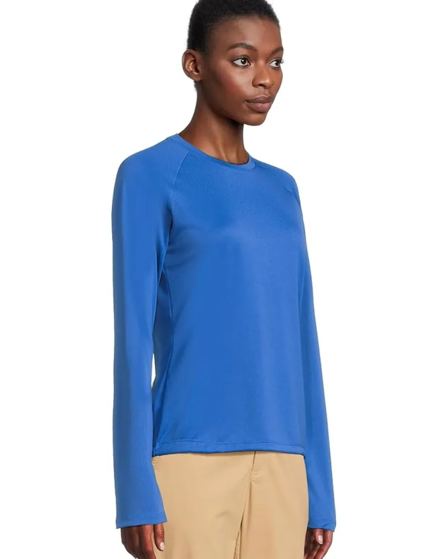 - Casual and stylish, the pull-on style Columbia® PFG Solar Stream™ Long Sleeve is perfect for your everyday wear. The regular-fit tee has a crew neckline, long sleeves, and a straight hemline. The sun protection cuffs extend over the back of your hands to block out harsh rays. The tee has an Omni-Shade™ UPF 50 fabrication that protects your skin during outdoor activity by blocking harmful Ultraviolet A and Ultraviolet B rays (UVA and UVB).