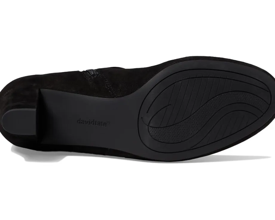 - Walk like a diva wearing the David Tate® Cutey. Crafted from gathered wrap detailing suede upper, this pair of boots features tricot lining, cuban heel, and zippered side closure for easy on and off.