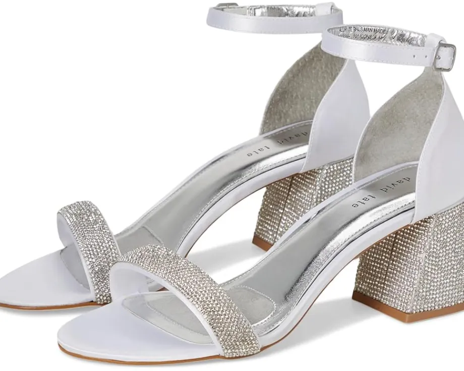 - A gorgeous and glamorous pick for your evening parties, the David Tate® Icon Heels showcase a premium quality satin upper perfectly teamed with shimmery rhinestone embellishments on the toe strap. Equipped with a feminine buckle strap closure at the ankle, the shoes look more stylish with the high quality sockliner made with satin, suede, and soft leather and surrounded by a metallic frame. The rhinestone-covered block heel lifts your look with some added charm.