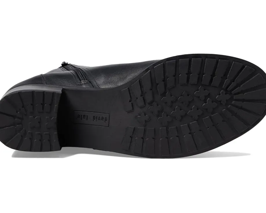 - Dance to the bohemian spirit wearing the comfy David Tate® Lago Boots. This round toe pair features a waterproof calfskin leather upper construction with hidden gore panels and stacked block heels.