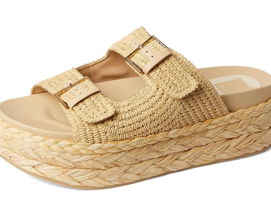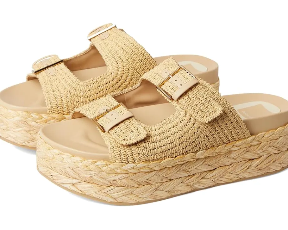 - Designed with an espadrille-inspired synthetic outsole, the Dolce Vita® Fayln sandals are perfect for styling up your looks and outfits. Their woven raffia upper features dual buckle straps for a secure fit. They are made of a contoured footbed and water-based leather lining. These heeled sandals will keep you comfortably and stylishly on your feet all season long.