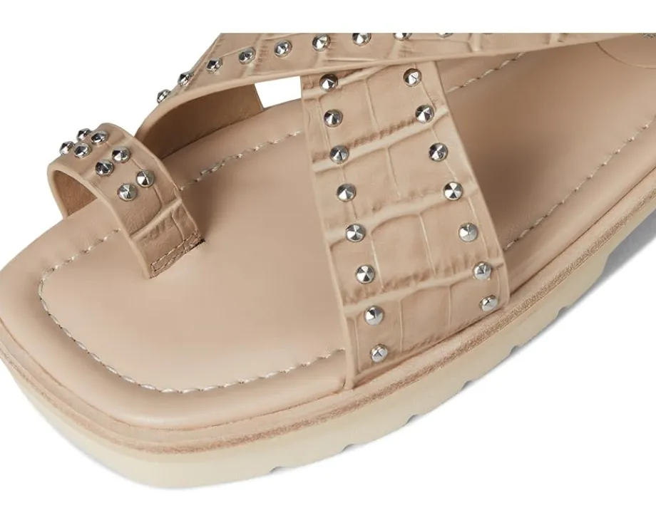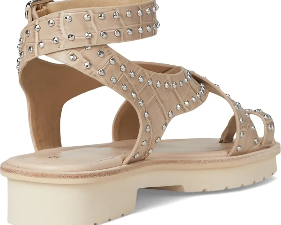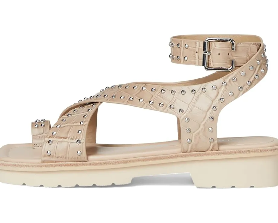 - Step in style with the Donald Pliner® Thalita lug-sole sandal in a croco embossed leather upper. This square toe style features a multi-strap upper with an adjustable buckle closure on the ankle strap and a toe ring adorned with metal studs. With a padded insole, this sandal is sure to keep you comfortable all day.