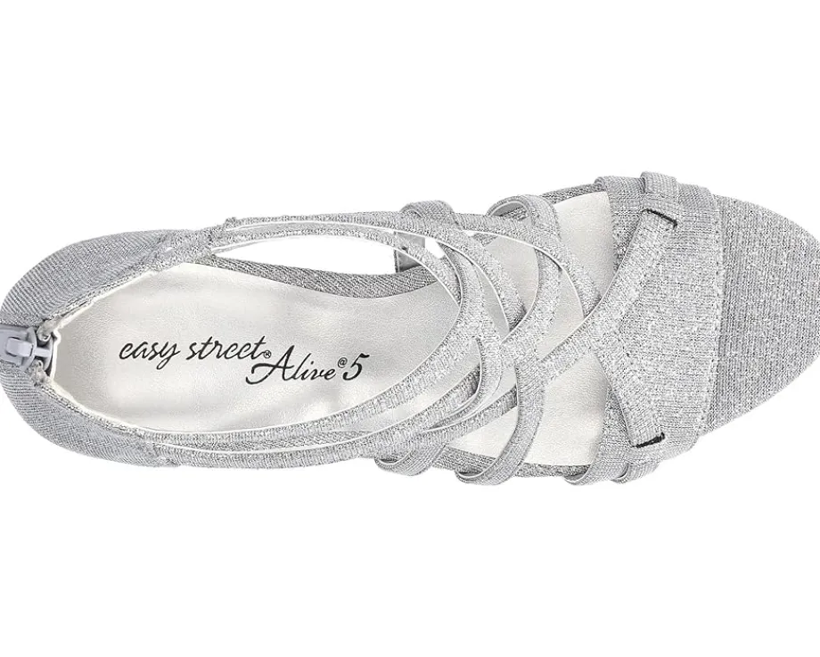 - A sleek and strappy faux leather upper with an open round toe and a stable stiletto heel adds contemporary elegance and charm to the Easy Street® Bee Heels. Versatile and comfortable, these shoes are designed with gored elasticized straps for a flexible fit, a zippered back closure for easy on and off, and a foam padded insole for cushioning comfort.