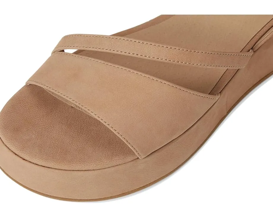 - Adorn your casual looks wearing Eileen Fisher® Dae Wedge Heel, crafted with a strappy leather upper and breathable leather lining. The leather-wrapped wedge heel adds a bold look and the ankle strap & buckle closure ensures a secure fit. The leather insole is added for improved comfort with every step.