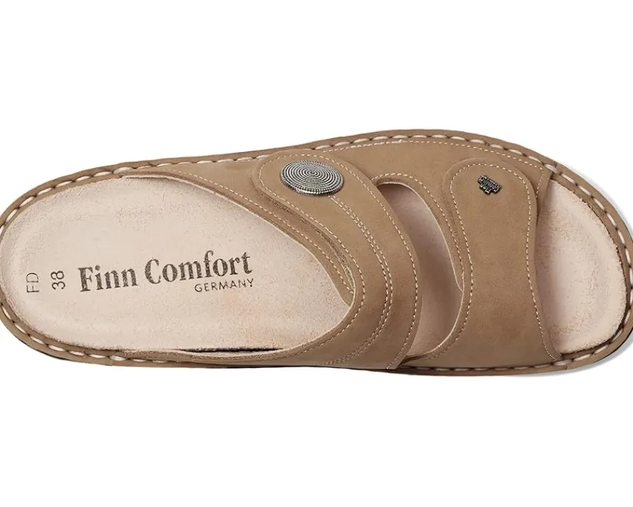 - The Finn Comfort® Sansibar-S Sandals feature premium construction. The rich leather upper boasts broad brand straps with hook-and-loop closures that offer comfort and adjustability to accommodate various foot types.