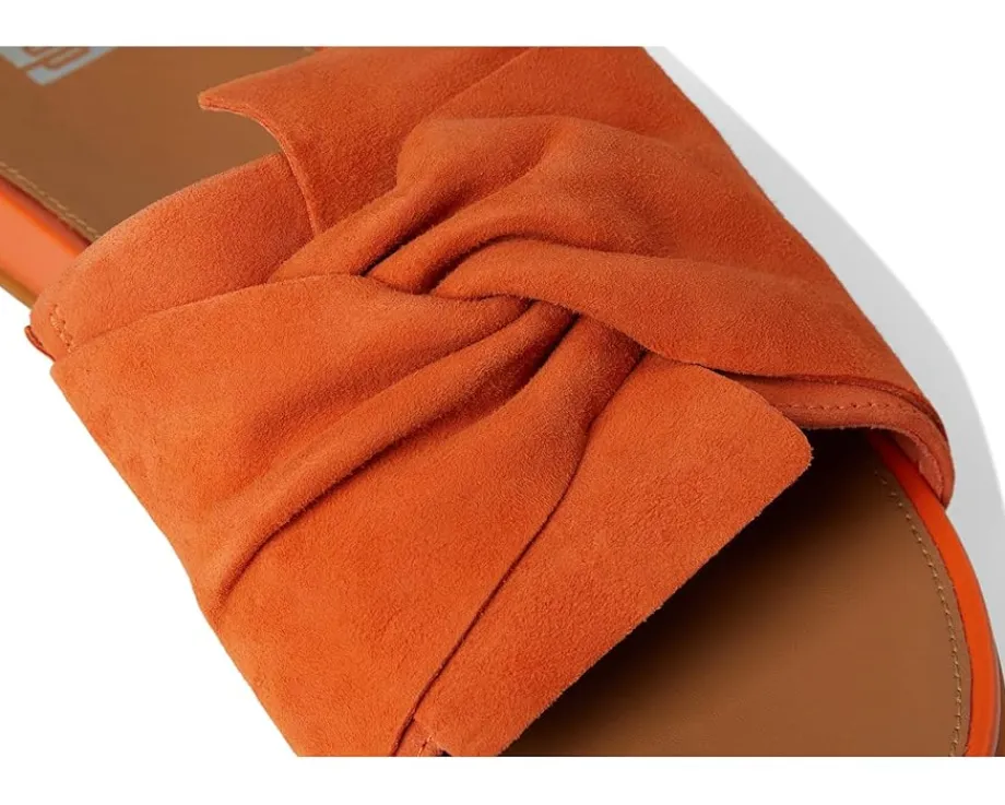 - Walk with finesse wearing the FitFlop™ Gracie Soft-Twist Suede Slides. Crafted from suede upper, microfiber lining, and anatomically contoured EVA-foam footbed that diffuses pressure and gives natural arch support, this pair of sandals features open round toe, soft sculptural suede bow detailing on the vamp, slip-on style with concealed elasticized insert, and brand detailing on the footbed.