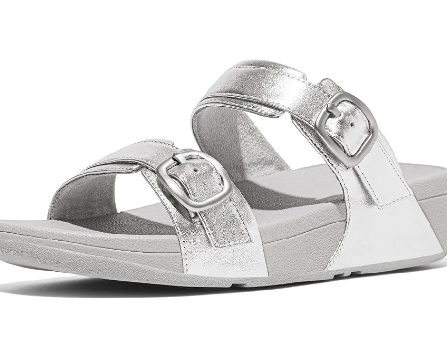 - Make a style statement donning the FitFlop™ Lulu Adjustable-Buckle Metallic-Leather Slides. Combining classic style with a customizable fit – thanks to a shiny curvy buckle on both straps. Crafted in shimmering metallic leather upper, softly padded rubber insole and ultra-comfortable microwobbleboard midsoles.