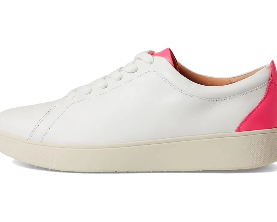 - Step out with elevated style and comfort wearing FitFlop™ Rally Neon-Pop Leather Sneakers.