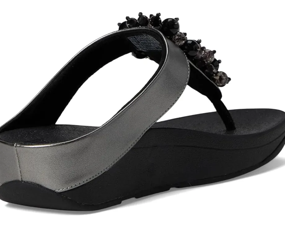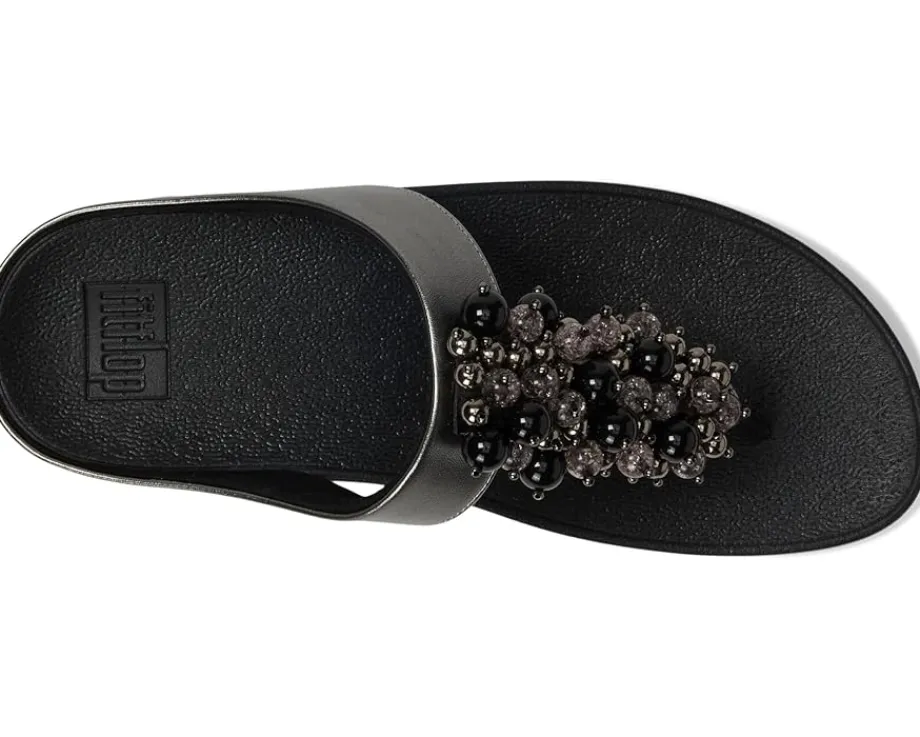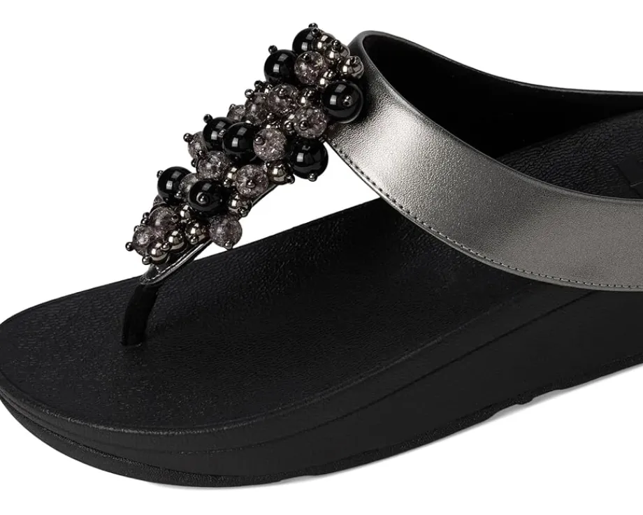 - Boldly showcase your style with the FitFlop™ Fino Bauble-Bead Toe-Post Sandals. These sandals feature a cushioned footbed, soft toe post, and a pressure-diffusing Microwobbleboard midsole for all-day comfort. The metallic pearl faux-leather and glossy ‘bauble-beads’ on the front strap add a touch of sparkle to any occasion. With a wedge heel and easy slip-on design, they’re perfect for daytime chic or evening extravagance.
