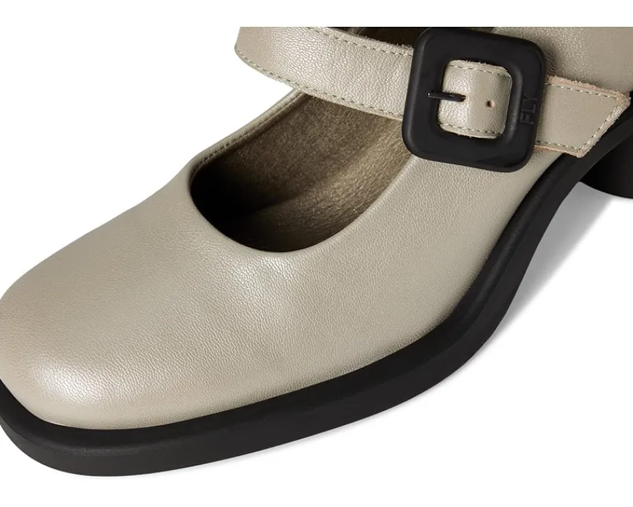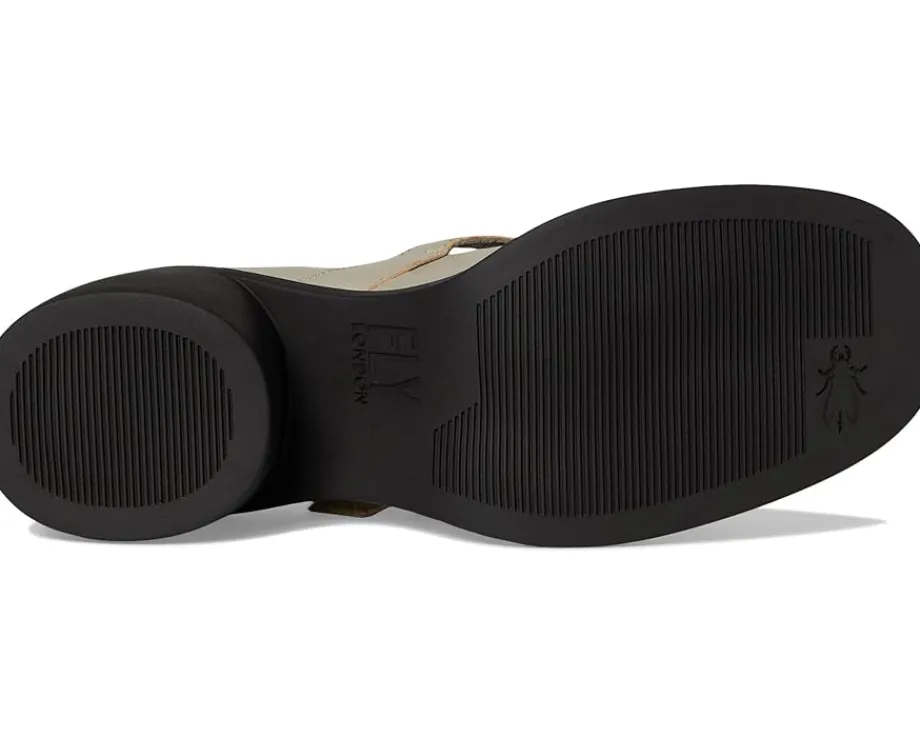 - Donne a pretty look for the next event or casual meet wearing the FLY LONDON® Huli382fly Sandals. The soft leather uppers and leather lining are sleek and luxurious. The rounded toe shape and removable cushion insole on the flexible TR outsole surround your feet in comfort, while the flared, rounded block heel give it a unique look. Plus, the adjustable front strap with buckle closure ensures a secure fit.
