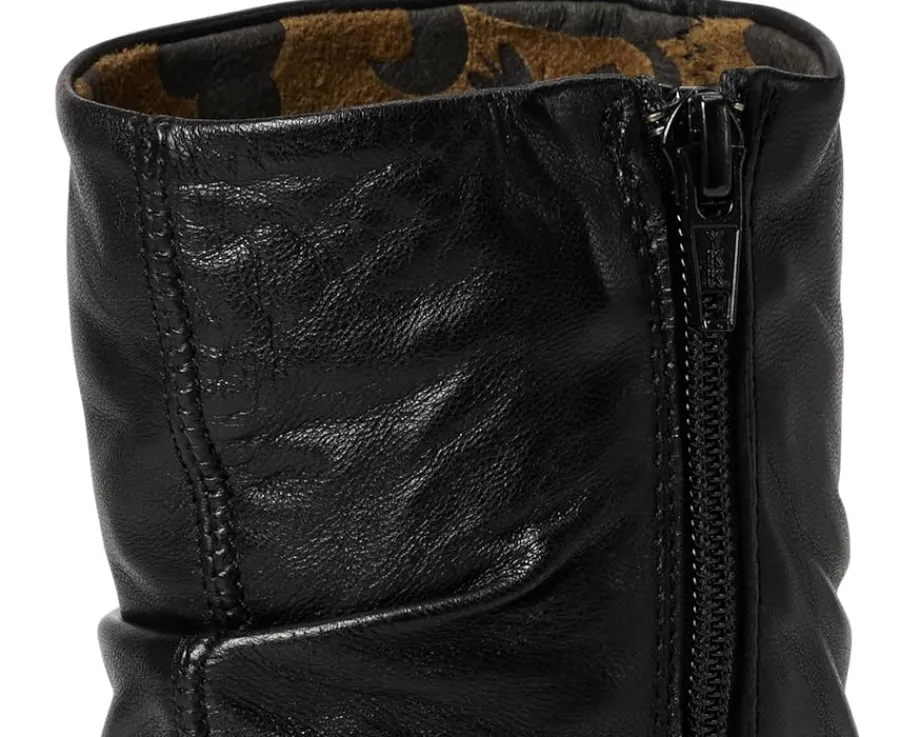 - The supple, ruched leather or suede uppers have an inside zipper making this FLY LONDON® KLEI152FLY mid-calf boot easy to get on and off. Its heel-to-toe foam insole, rounded toe shape, and flexible rubber outsole all work together to surround your feet in comfort.