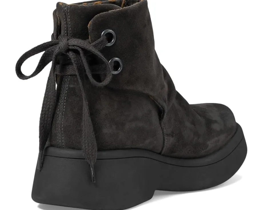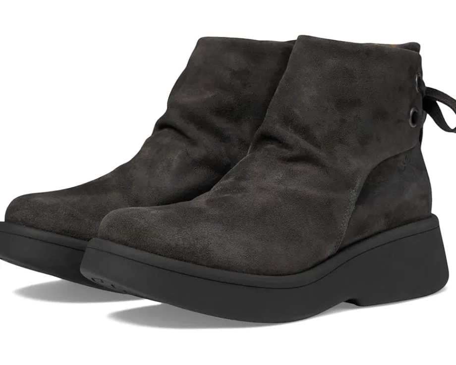- Designed with a back tie, the FLY LONDON® MEBS189FLY Ankle Boot looks unique and provides a flexible, comfortable fit. The rich suede upper is fabric lined and the thermoplastic rubber outsole is lightweight with a removable cushion insole and comfortable rounded toe silhouette.