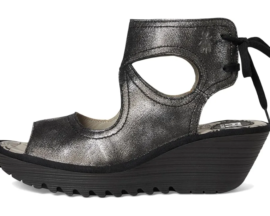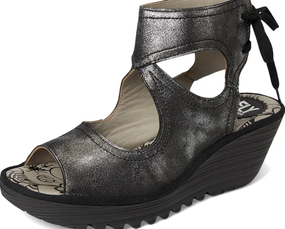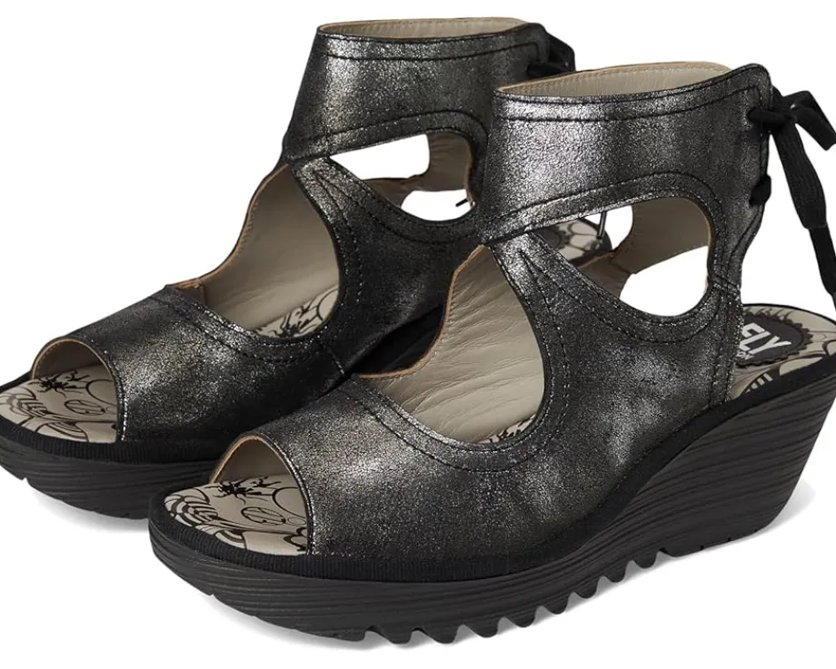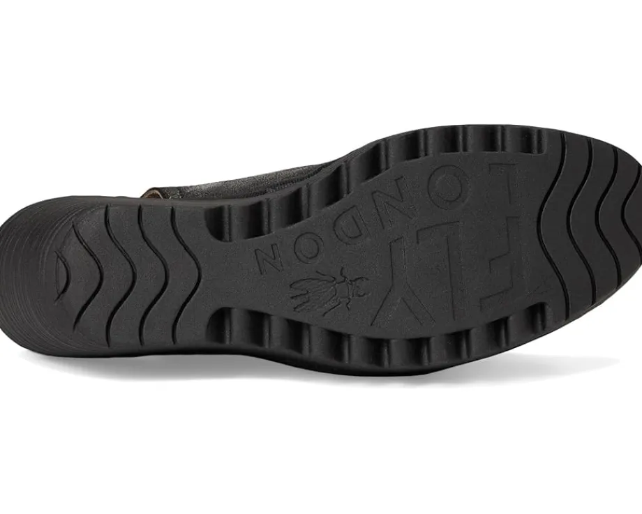 - A back-lace design makes the FLY LONDON® YULP571FLY easy to get on and off. The cut out design gives it a cool and unique look. Comfortable enough to wear all day, the heel-to-toe cushion insole, rounded toe shape with leather uppers and linings cradle your feet.