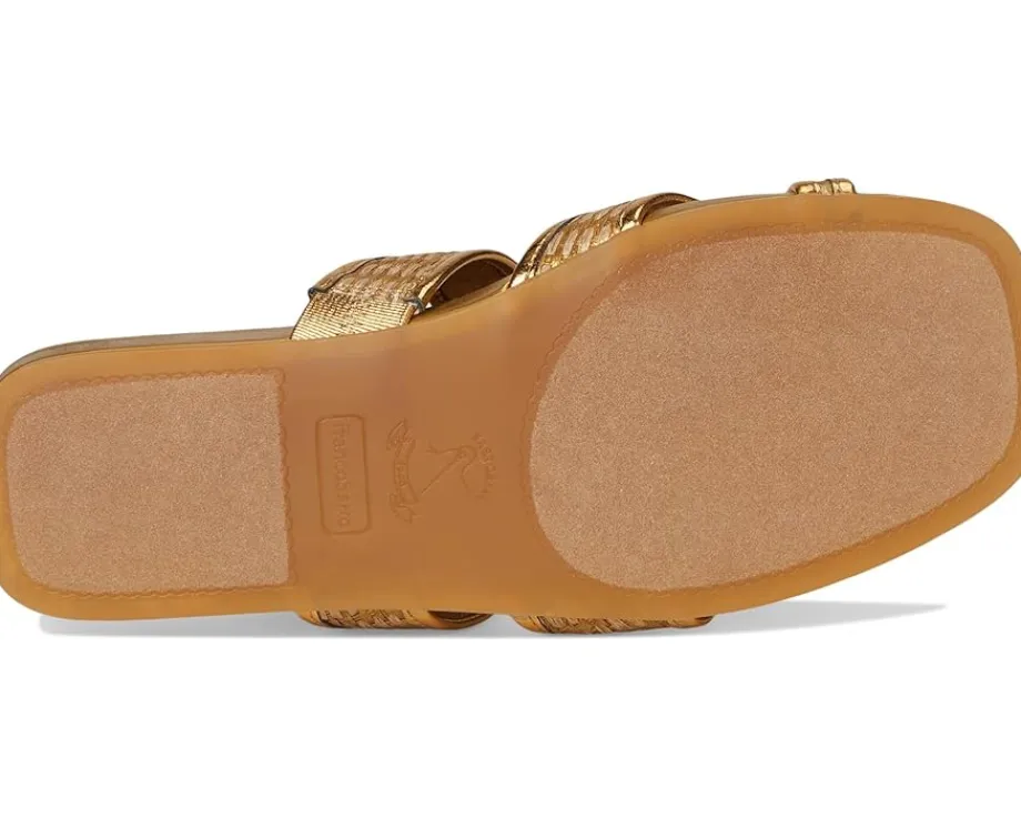 - Where comfort meets chic styling the Franco Sarto® Estella. Featuring a chic fabric upper and a soft PU lining, this sandal is as comfortable as it is stylish. The faux leather insole offers a smooth feel, while the synthetic rubber outsole ensures durability with every step. Its slip-on silhouette, accented by a modern toe loop and a flattering square toe, adds a refined touch to any look.