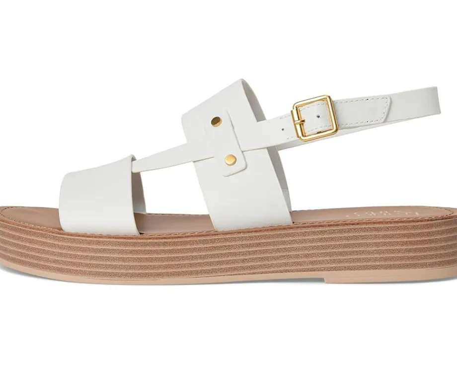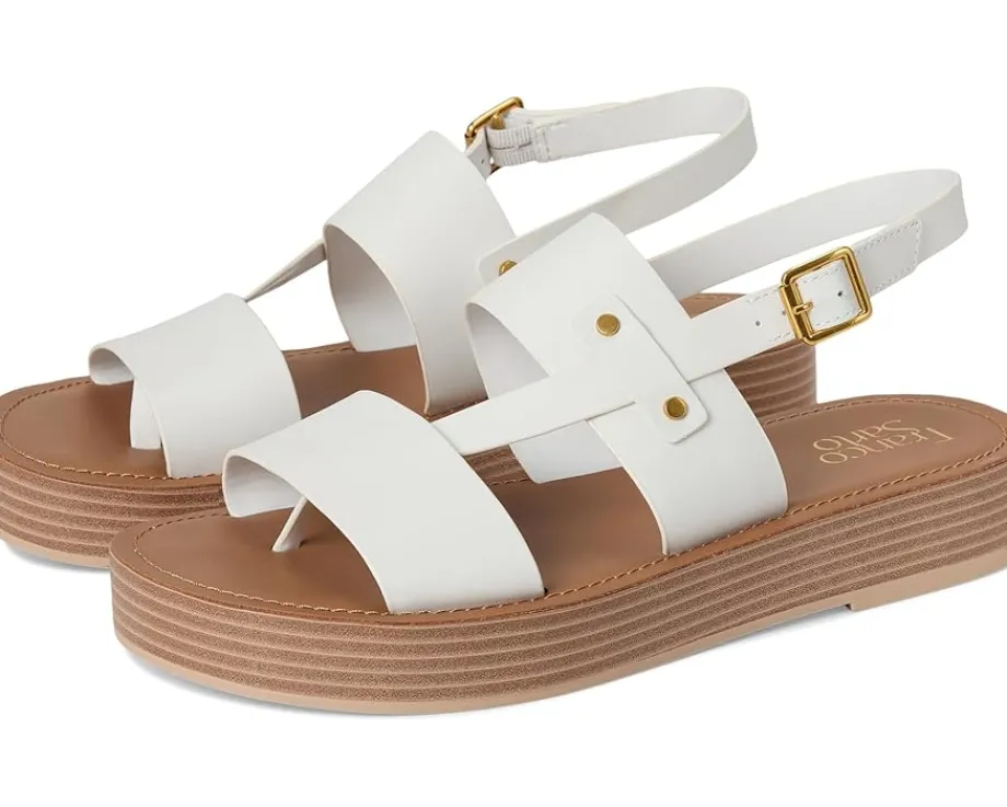 - An eye-catching silhouette and haute hardware detailing combine to create the Franco Sarto® Genova sandals. These bold platform sandals are made of a leather insole and polyurethane lining. The leather upper features an ankle strap with adjustable buckle closure. Easy to slip on and off, these leather sandals are perfect for your outdoor rides and casual outings.