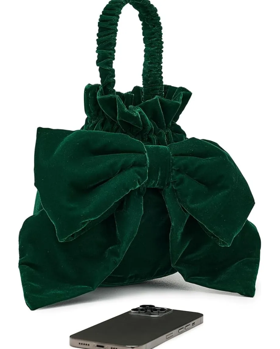- Make a statement with the Free People™ Belle Velvet Bow Bag. Crafted from a soft velvet fabrication, this bag offers an unstructured pouch-style, oversized bow applique, smocked elasticated handle, an interior slip pocket, and a detachable strap.