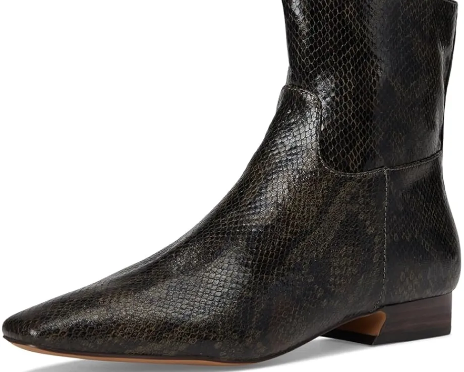 - You’re effortlessly cool in these easy slip-on Free People™ Easy Does It Snake Print Ankle Boots, featuring a chic snip toe and low, slanted block heel, all in an edgy snake print for a textured take on a classic style. The ankle-high boots feature a faux leather upper, leather lining, leather insole, and a zipper closure.