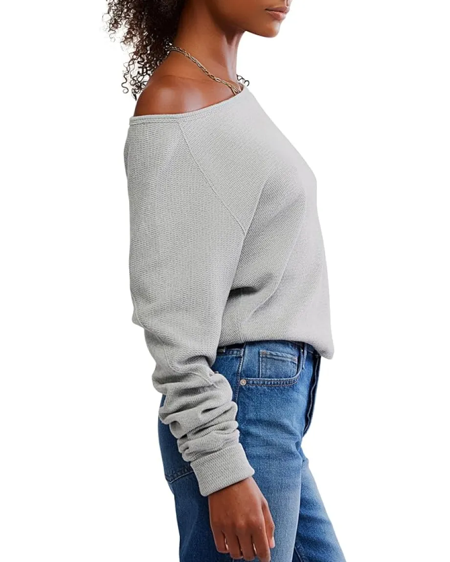 - A cozy base for endless outfitting, this Free People™ Jess Long Sleeve pullover is featured in thermal fabrication with a flattering boat neckline and slouchy dolman sleeves. It has thermal-knit textured cotton-blend construction with a seamed details and elongated sleeve cuffs.