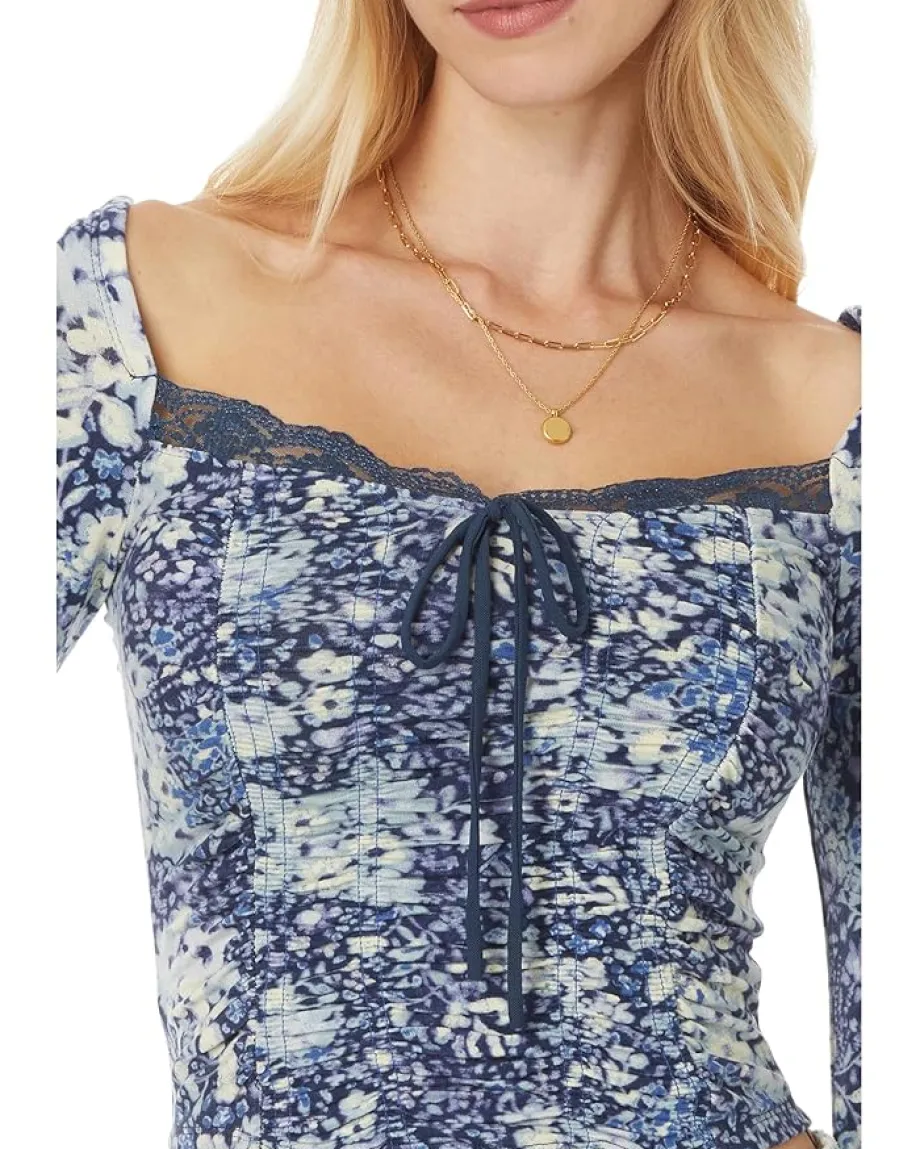 - Flaunt your uber-chic style effortlessly wearing the Free People™ Layer It On Me Top. Crafted for breathability and comfort, this top features a sweetheart neckline with lace details & tie-up closure, long sleeves, allover front print, and a cropped silhouette.