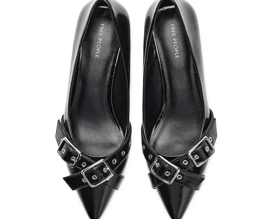 - Have a throwback moment in these Free People™ So 90s Kitten Heels, featuring smooth faux leather with buckle details and a sharp, pointed toe design. These heeled pumps are made of a rubber insole and faux leather lining. Comfortable and stylish, these heels add sophisticated style to any outfit while remaining extremely wearable.