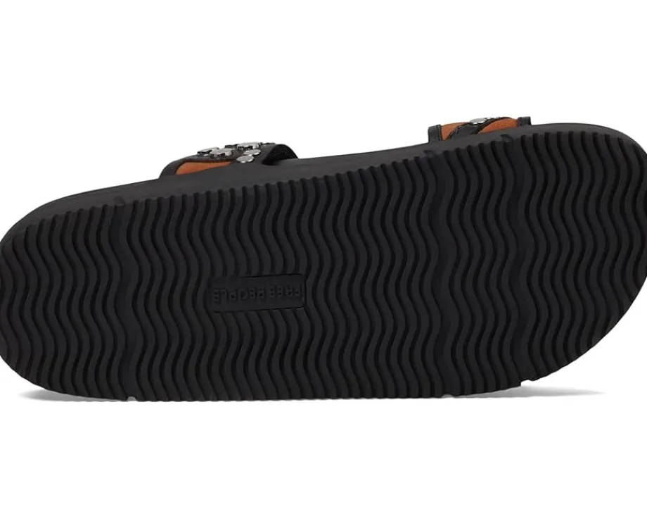 - Stay free while walking outdoors by wearing Free People™ Revelry Studded Sandal. The sandal features a slip-on style and double strap embellished design with large buckle back strap. It has leather upper, leather lining, and insole.