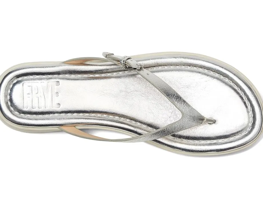 - The Frye® Maya Buckle Thong Sandals are crafted with a soft, natural full-grain leather upper and a soft, cushioned EVA construction, adding sophistication and comfort to any outfit. Featuring elegant and simple styling, this warm-weather essential showcases an adjustable leather strap for a customized fit. Enjoy all-day comfort with the padded leather-covered footbed that cushions your feet with every stride. They are made of a foam insole and leather lining. These slide sandals are a great choice for your casual outings.