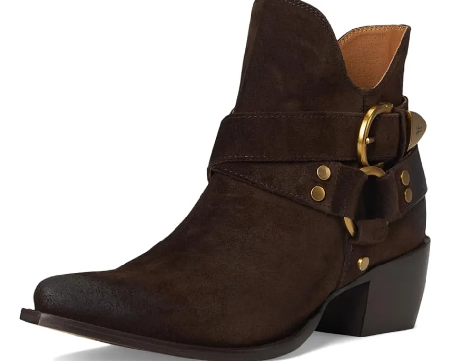 - Make a bold statement donning the confident and free-spirited Frye® Sacha Multi Strap Bootie. Add character and authenticity to your footwear collection with the vintage leather and suede options, and transition comfortably from day to night with the chunky block heel. This ankle-bootie features multiple straps and buckle harness accents. Choose between warm and earthy tones to pair these booties with a boho maxi dress for a whimsical ensemble, or opt for a denim pencil skirt to channel urban sophistication.