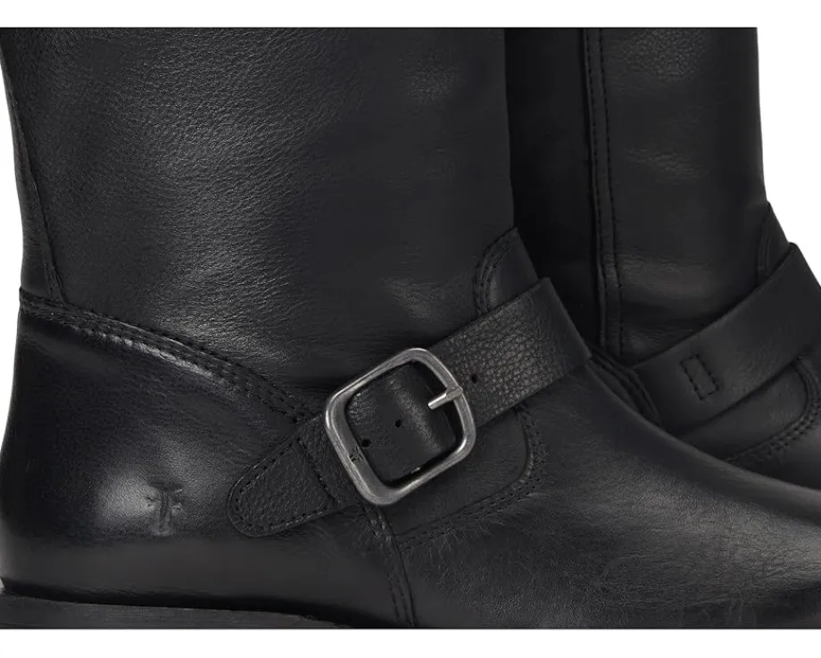 - Crafted for comfort and attitude, the Frye® Veronica Flex Short boots feature premium materials and a cushioned EVA insole for all-day wearability. These moto-inspired boots are made of a soft tumbled leather upper and leather lining. The adjustable buckle straps and elasticized gore panel on one side offer easy on and off. The mid-calf shaft, round toe silhouette, and chunky block heels pair effortlessly with rugged denim or casual looks, while the new Flex rubber outsole construction makes for out-of-the-box comfort.