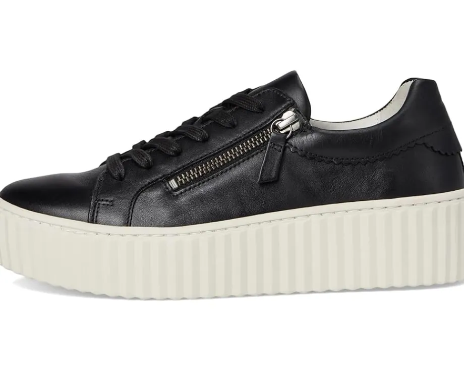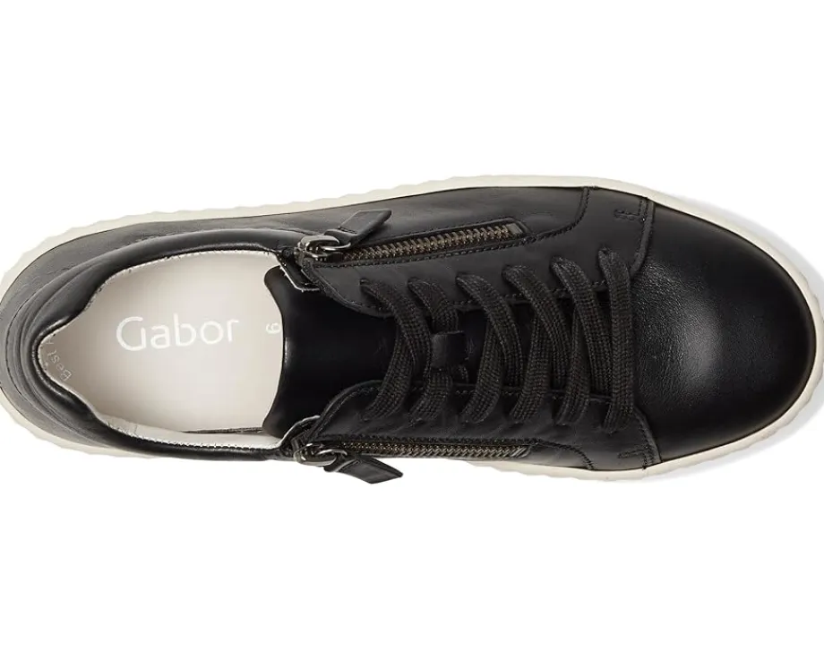 - The Gabor® Gabor 73.200.27 Tennis Shoe combines sporty style with elevated comfort. Set on a flatform sole, it offers subtle lift while maintaining a relaxed, wearable feel. This low-top design features both zippers and laces for a secure, customizable fit, while the soft cushioned leather insole and flexible synthetic rubber outsole ensure all-day ease.