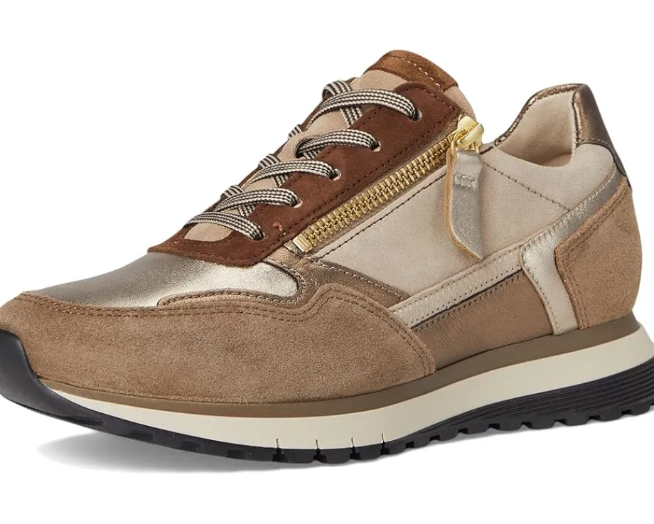 - The Gabor® Gabor 76.378.82 is a fancy sneaker with an easy-on zipper and laces. Made with suede upper and leather lining, these shoes are both stylish and durable. The cushioned, supportive insole ensures all-day comfort, while the flexible EVA outsole allows for easy movement.