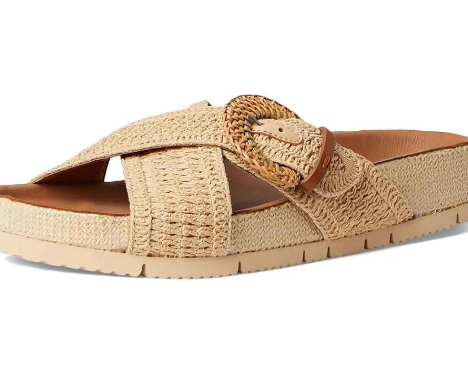 - Designed with a multi-layered comfort system and PORON® performance cushioning, the Gentle Souls® by Kenneth Cole Louisa sandals provide exceptional support and cushioning with every step. This slip-on footwear is designed with textured leather upper straps and a decorative buckle for added flair.