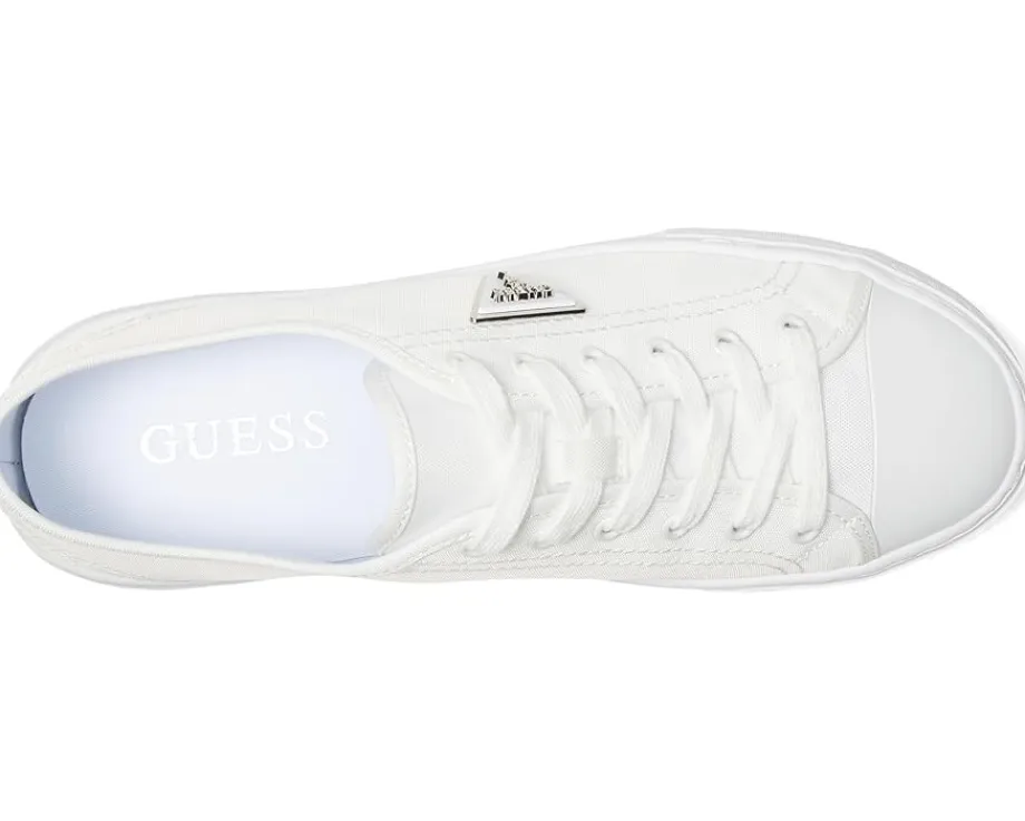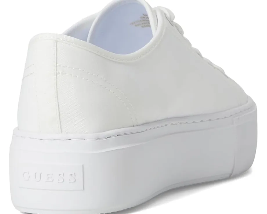 - The GUESS® Joezi shoes give a casual dress-up-or-down appeal. These platform sneakers are accented with a signature Guess triangle logo that is ready to wear with jeans or a dress. They are designed with a cushioned insole, synthetic sock lining, and synthetic rubber lining. The rubber upper features a lace-up closure for a secure fit. These lace-up sneakers are perfect to pair with different outfits and styles.