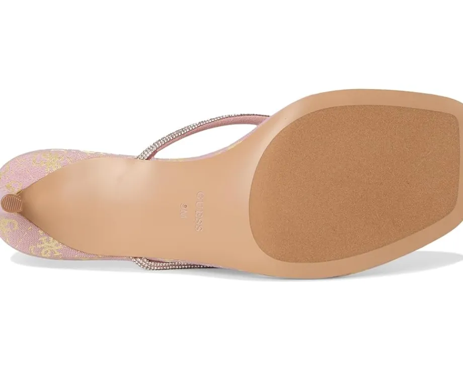 - The GUESS® Mayan is your ultimate go-to for chic, effortless glamour. Featuring a rhinestone-embellished thong strap and a sleek kitten stiletto heel, this slip-on style brings instant sophistication to any outfit. Crafted with a rubber upper, PU lining, and synthetic rubber outsole, it offers lightweight comfort and durability while keeping your look on point. Perfect for brunches, date nights, or evening soirees, the Mayan transitions seamlessly from day to night, giving your wardrobe that elevated touch you’ve been craving. Its playful shimmer catches the light, drawing attention wherever you go, while the easy slip-on design ensures no-fuss elegance.