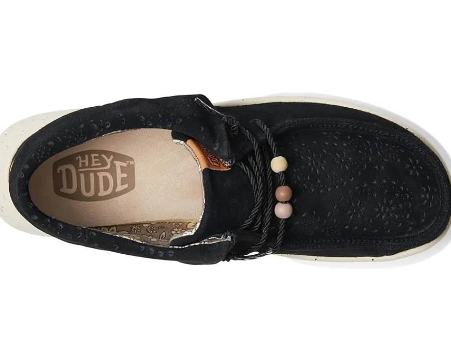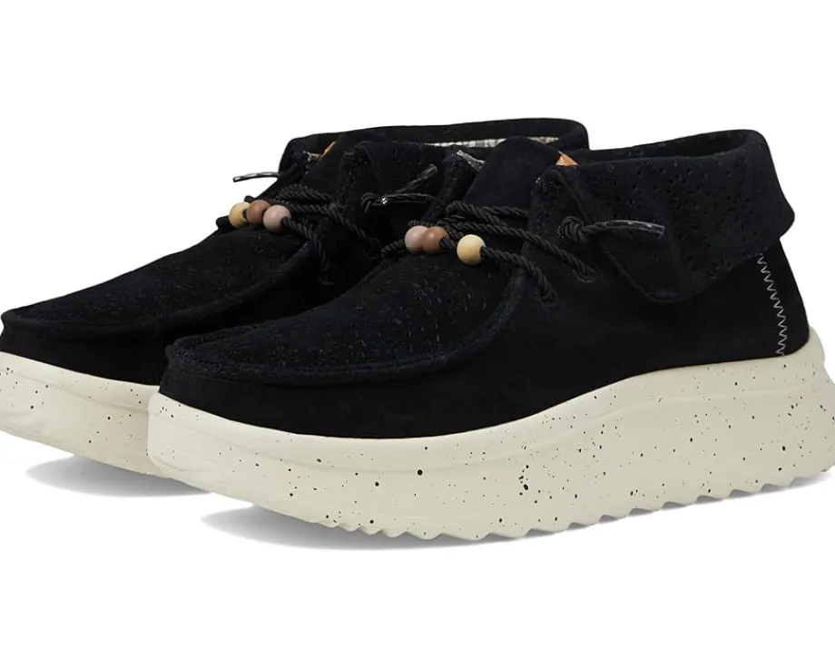 - Give these Hey Dude® Wendy Peak Suede Fold Boot for a dressy occasion for your little kid. The shoes feature a moc toe, a wrap collar with cutout details, and a foot-hugging platform. Elastic laces for ultimate slip-on ease.