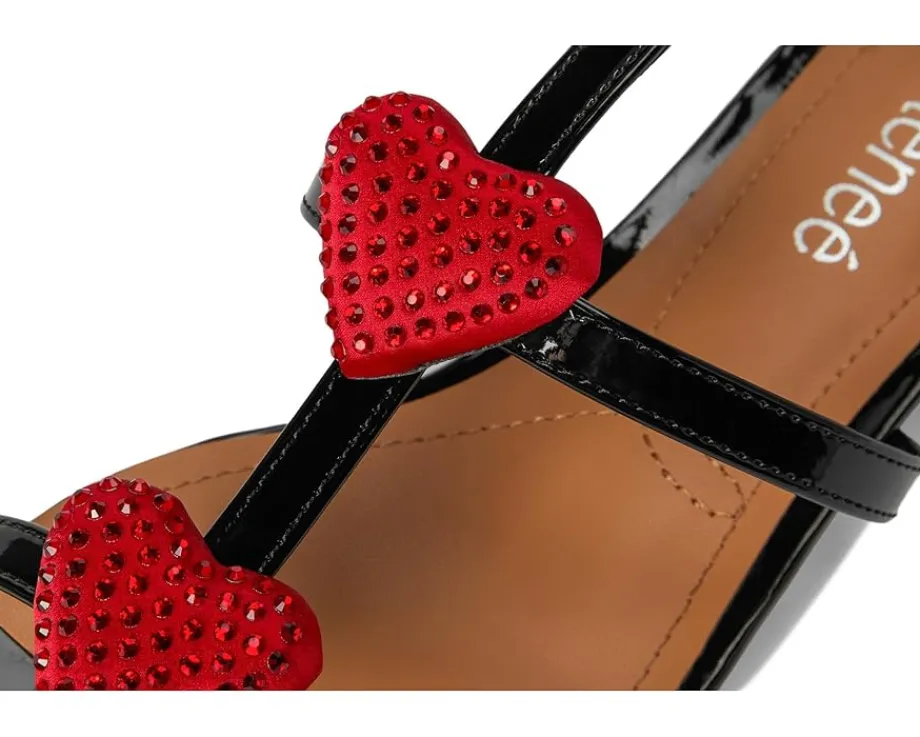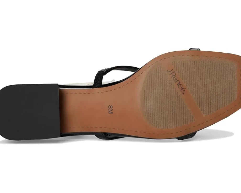 - The J. Renee® Heartly sandals are square-toe-shaped sandals that have a memory foam and latex insole and synthetic lining for all-day comfort. These heeled sandals feature a polyurethane upper that is styled with embellished heart detail for an eye-catching twist. The ankle strap with an adjustable buckle closure ensures a perfect fit. Match your different outfits and styles with these fashionable sandals.