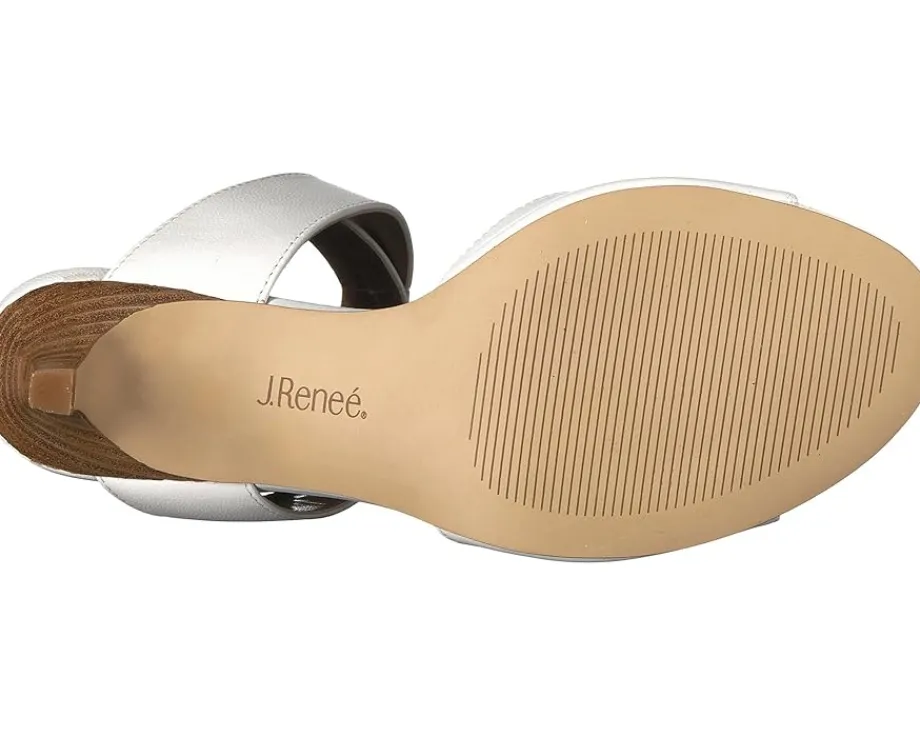 - Available in multiple materials with an open toe and wrap-around straps at ankle.