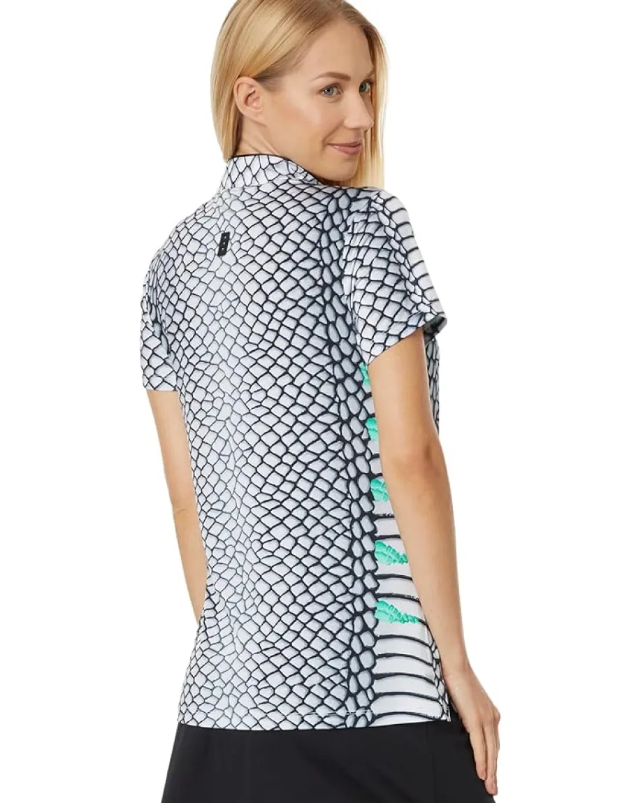 - Add a casual touch to your look by wearing the Jamie Sadock® Serpent Print Shirt. The regular-fit shirt has a stand collar neck with zipper closure, short sleeves, and a straight hem. This pull-on shirt features an intricate print that elevates the overall look effortlessly.