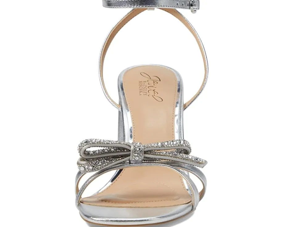 - Embody a revolutionizing style in your regal look wearing the Jewel Badgley Mischka® Hillary Sandals. The square toe pair features polyester upper construction with block heels and buckled ankle strap closure.
