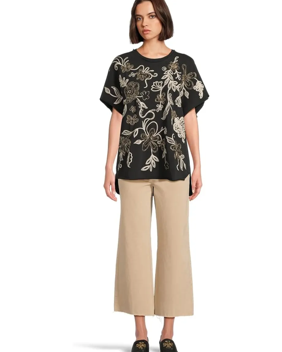 - Say goodbye to wardrobe dilemmas with the simple yet stunning Johnny Was® French Terry Poncho. The pull-on style top features a crew neckline, short sleeves, a high-low hem, and is finished with allover embroidery and bead detailing on the front.