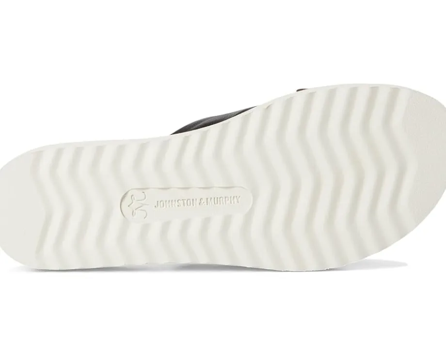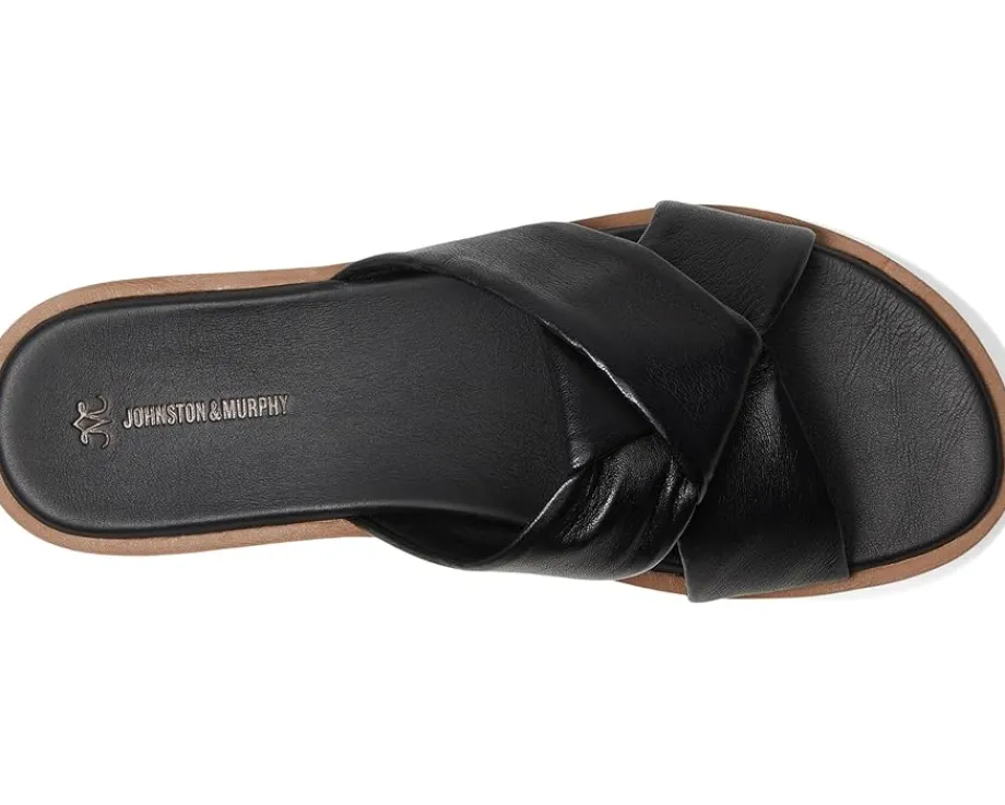 - Indulge in the ultimate fusion of style and comfort choosing the Johnston & Murphy® Mitzi Knotted Slides. This eye-catching knotted design in glove leather effortlessly elevates any outfit, while the luxurious leather lining and highly cushioned TRUFOAM® footbed ensure your feet stay supported and relaxed all day. It has a leather lining for a soft, supple feel, a leather welt, and a covered footbed for premium quality.