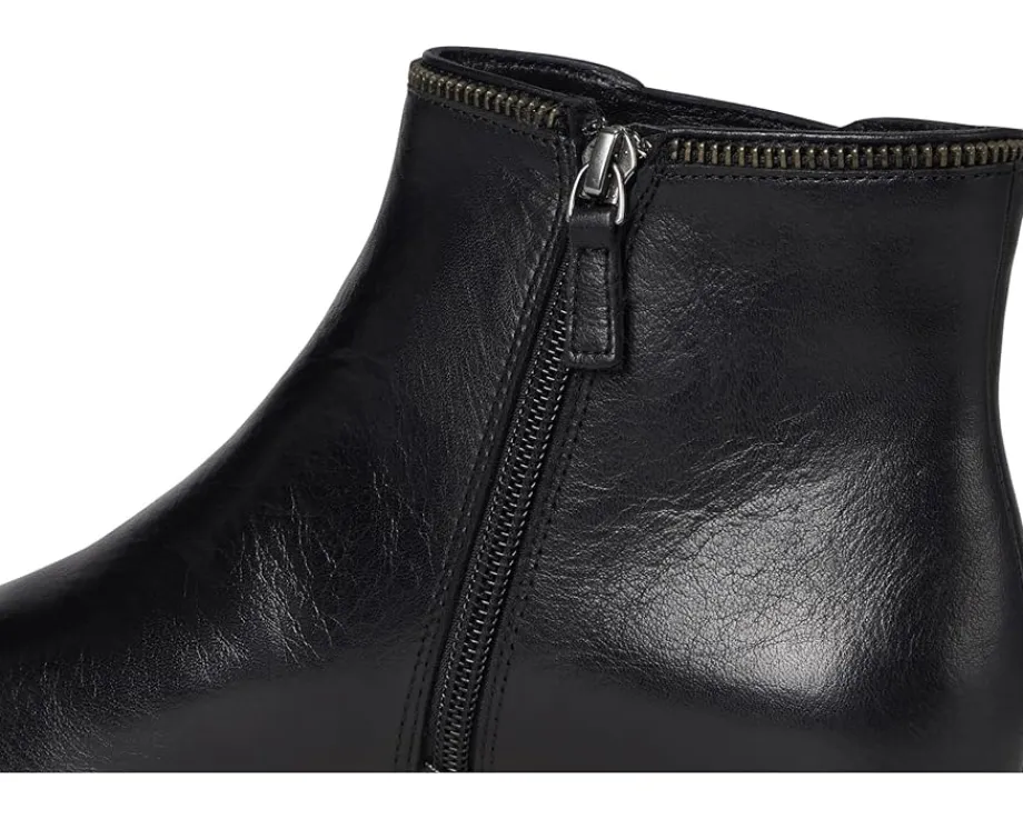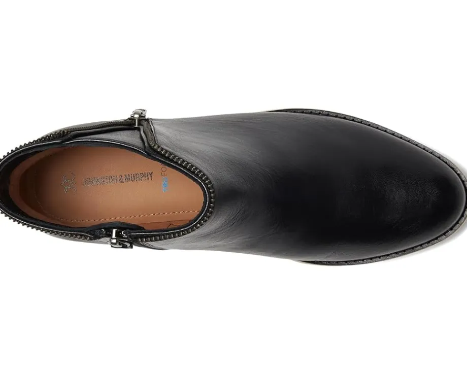 - Charm meets elegance with this Johnston & Murphy® Mitzi Zipper Bootie featuring a low-top profile and soft almond toe silhouette. The footwear has suede upper construction with skeletal leather and microfiber lining, and cushioned, leather-covered footbed for all-day comfort.