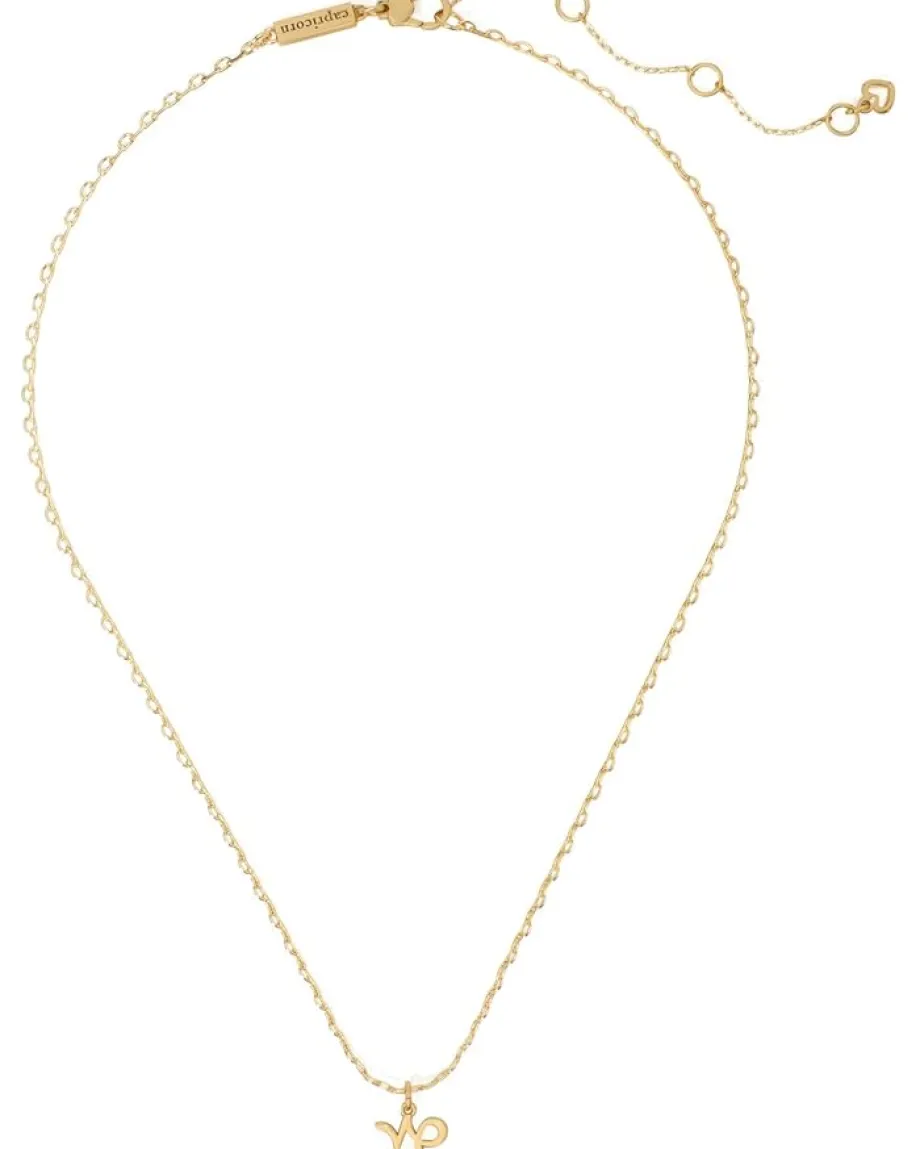 - Shine like the stars wearing the Kate Spade New York® What’s Your Sign Capricorn Mini Pendant! Crafted from polished brass and adorned with sparkling cubic zirconia, this celestial charm is the perfect way to embrace your Capricorn pride. The delicate mini pendant adds a subtle yet striking touch to any outfit, while the durable lobster clasp ensures secure wear all day long. Whether you’re gifting or treating yourself, this zodiac-inspired piece brings a personal touch to your jewelry collection.