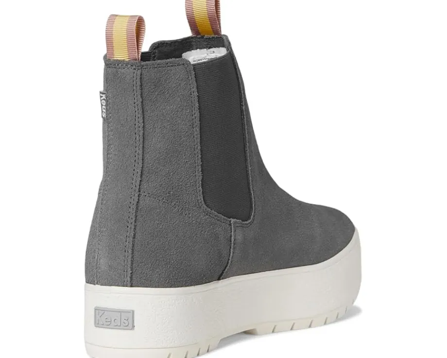 - Strike a minimalist appeal by complementing your casual attires with the Keds® The Platform Chelsea Lug Boots. The boots are designed with a round toe shape, elastic gore panels, and ankle pull tab for donning & doffing. These are engineered with a leather & synthetic upper, textile lining, and textile insole.