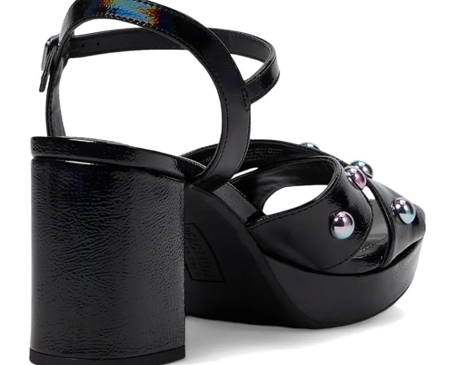 - Nothing can replace the Kenneth Cole Reaction® Reeva Stud Heels when you wish to lend a gorgeous and elegant finish to your evening look. Displaying sleek crossover straps with embellished studs and elevated by a lofty block heel, the shoes are formed with man-made upper, lining, and insole. They possess an open round toe design and an adjustable buckled strap closure at the ankle for a custom fit.