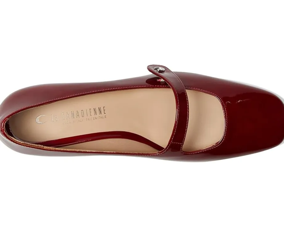 - This gorgeous La Canadienne® Flanery Mary Jane pump features modern edge with it’s flared block heel and rounded square toe. The heel height is perfect for all-day wear. The patent leather makes these shoes easy to dress-up or dress-down. Our City Dry™ technology features waterproof Italian patent leather and a breathable leather lining that keeps you comfortable whether indoors or outside. Cushioned memory foam insole.