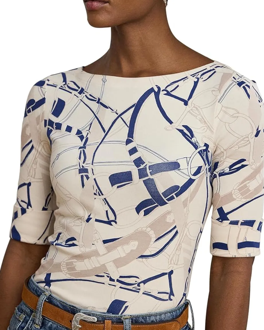 - Look and feel gorgeous donning the classic LAUREN Ralph Lauren® Belting-Print Cotton Boatneck Tee.