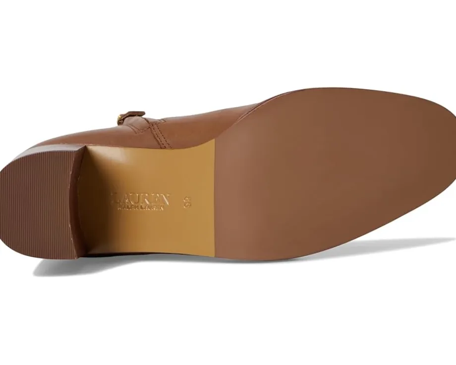 - Flaunt your stylish look wearing the sleek silhouette Lauren Ralph Lauren® Cassie Burnished Leather Bootie in luxuriously smooth burnished leather for a refined sensibility. A stacked leather heel creates a leg-elongating effect, while an “LRL”-debossed logo at the back of the ankle adds a signature finishing touch. Featuring almond toe, block heel, zippered side closure, and padded insole.